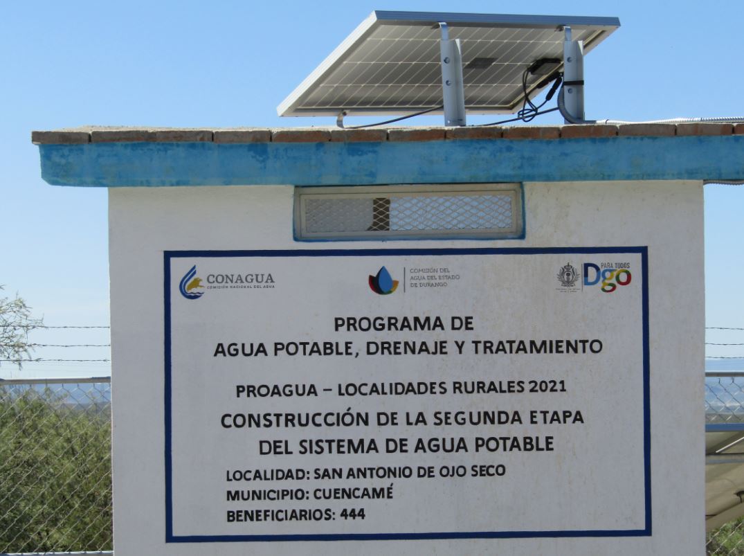 CONSTRUCCIÓN DE LA SEGUNDA ETAPA DEL SISTEMA DE AGUA POTABLE : EQUIPO DE BOMBEO SOLAR, DESCARGA HIDRÁULICA 3 " DE DIÁMETRO, CASETA DE CLORACIÓN, CERCO DE PROTECCIÓN DE 20 X 20, TANQUE ELEVADO METÁLICO 50 M3, 5902 ML DE RED DE DISTRIBUCIÓN EN 3" DE DIÁMETRO Y 53 TOMAS DOMICILIARIAS. ETAPA 2/3, LOCALIDAD J. GUADALUPE RODRÍGUEZ, GUADALUPE VICTORIA DGO. |